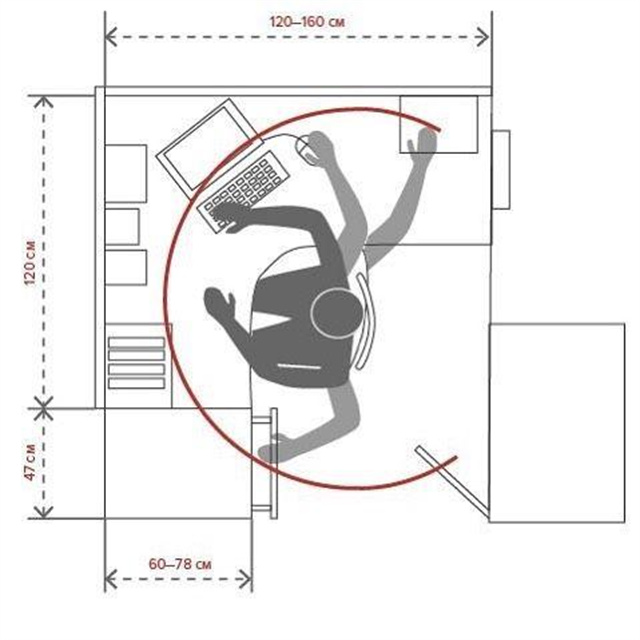 6.3.1 L型的辦公桌為常用辦公桌,辦公桌標準尺寸:高度一般為0.7~0.8mm,寬度為0.6~0.78mm,長度為1.2~1.6mm。
