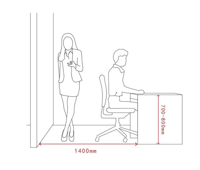 6.2.1 辦公室的通道尺寸不應少于0.9m,滿足兩個人正面和側面同時通過。