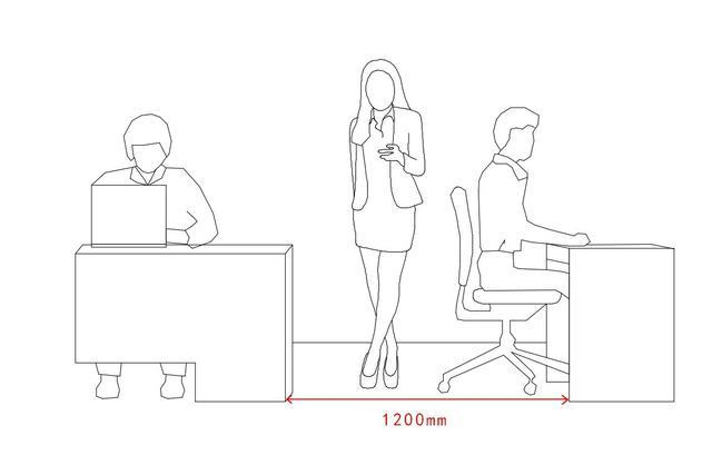 6.2.9 橫式辦公臺與豎式辦公臺布置時中間過道不應少于1.2m。