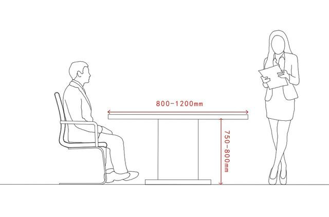 6.6.2 常規(guī)的洽談桌以圓形居多:圓形洽談桌的尺寸直徑為0.8m。部分洽談室會設計長方形的洽談桌,尺寸為1.2m*0.9m;