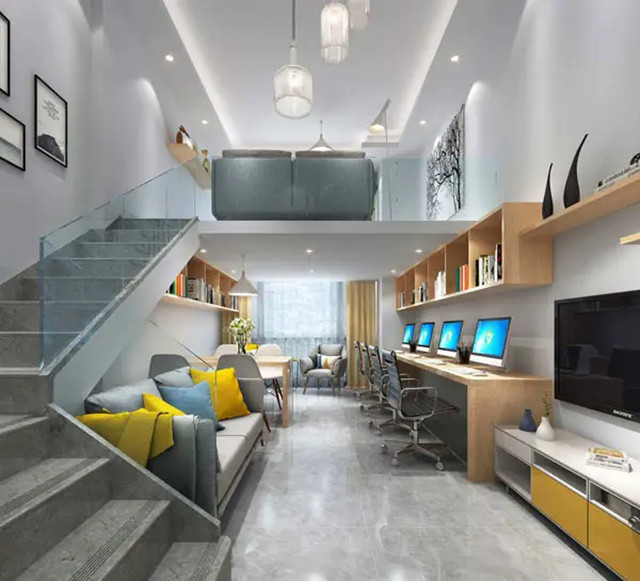設(shè)計(jì)裝飾成公寓式辦公室的大多是商住樓和辦公公寓建筑,區(qū)別公寓式辦公室最大的特點(diǎn)就是除了日常辦公,其間還兼具有盥洗、寢室、日常生活等功能,即白天辦公,晚上休息的辦公住房一體的雙重功能空間。